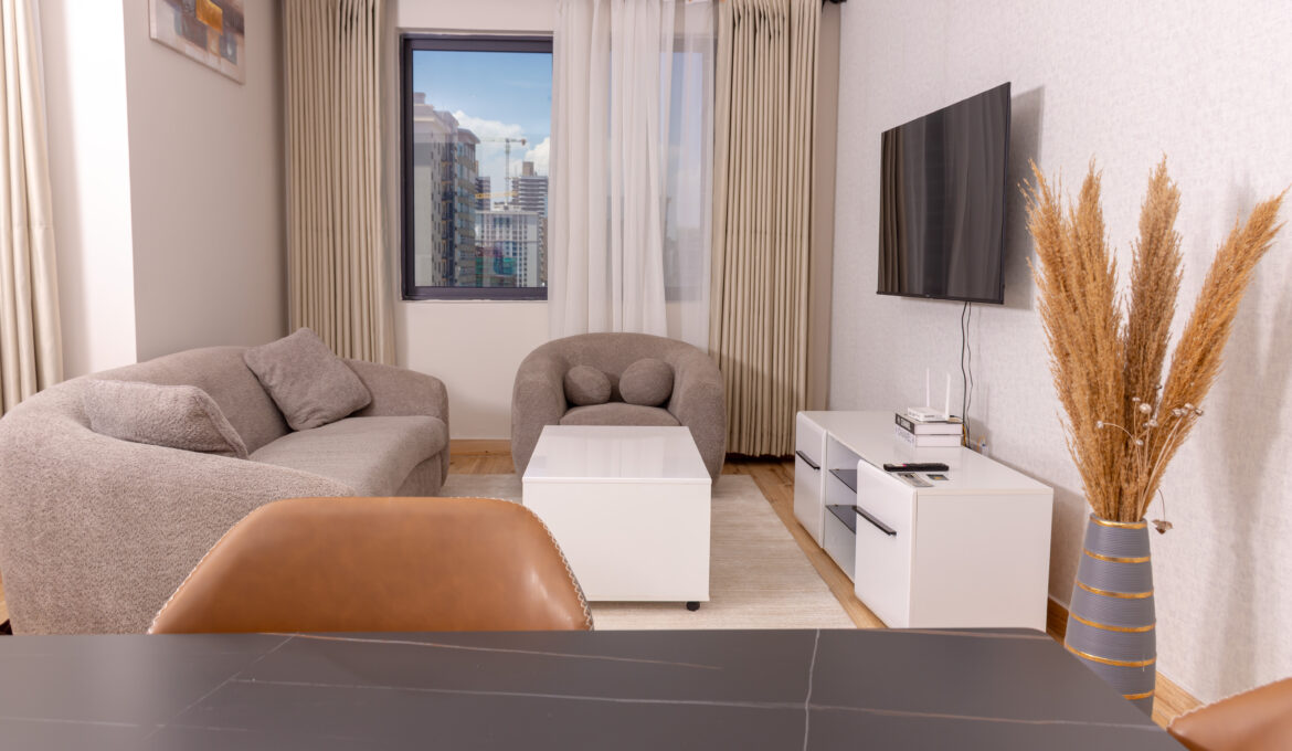 Cedar Five presents a beautifully furnished apartment where contemporary design meets residential comfort. The interior palette is warm and inviting, complemented by stylish furniture and spacious living areas.
